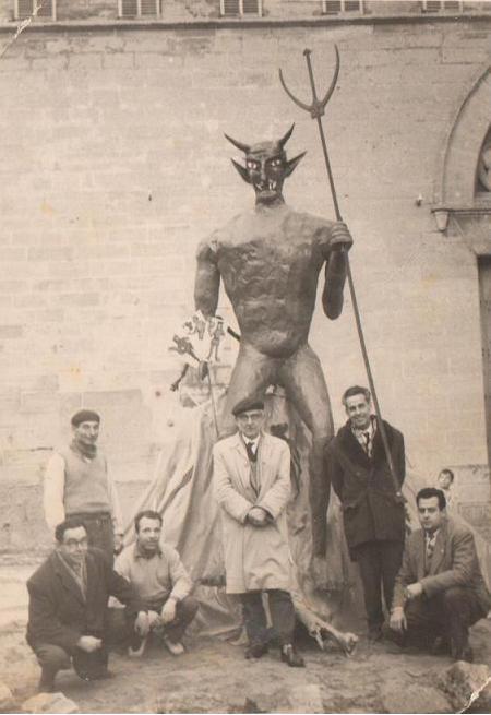 El primer fogueró que se solia encendre era el de la plaça del Rector Ferragut, davant el portal dels homes de l’església, i una partida d’anys de les finestres de l’orgue mitjançant un cable s’amollava un dimoni fet amb un sac ple de palla i coets, que a un moment determinat baixava i quedava aturat damunt el fogueró, i quan s’encenia esclataven les bombetes i coets que portava.